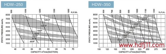 負壓羅茨風機也就是羅茨真空泵,我們通常叫做羅茨泵,在南方稱之為魯氏鼓風機或者魯氏風機,不過大家都指的是同一樣的產(chǎn)品,今天華東風機小編為大家分享,華東負壓羅茨風機HDW系列風機性能曲線圖: